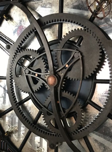 Over the top of this we designed some large planetary gears and a support system for them to move and appear steam-powered. It was a wonderful combination of computer-aided design artistic metalwork and rescued artifacts.