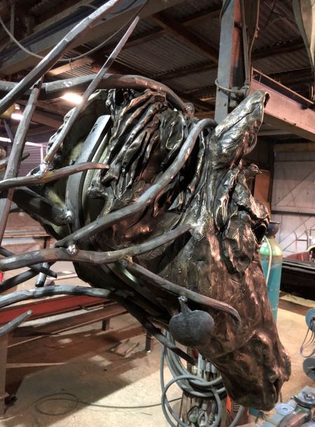 The sculpture that we designed and built took the shape of a horse, a connection to the horses that were so prominent in early 20th-century military history but with a much more positive and regenerative narrative.